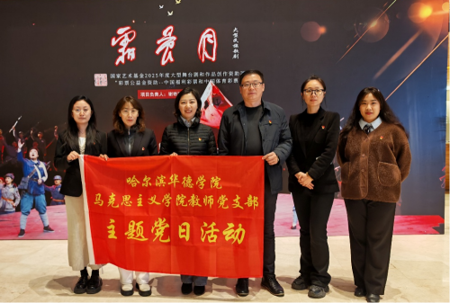 为庆祝中国共产党成立105周年,深化校地党建协同联动机制,推动高校“双带头人”教师党支部书记“强国行”专项行动走深走实,近日,哈尔滨市委统战部机关党委联合哈尔滨市中华职业教育社,组织多所高校党支部联合开展“观红色经典 强党性修养”主题党日活动。我校党委副书记、纪委书记邓维娜、党委统战部部长刘树、马克思主义学院党总支书记邵春凤及马克思主义学院教师党支部教师代表受邀参加活动,共同观看红色歌剧《霜晨月》,在红色艺术熏陶中锤炼党性、汲取奋进力量。