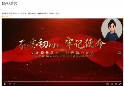 为破解传统党员教育时空受限、形式单一等难题,学院依托超星平台创新打造党支部学习专区,集成理论学习库、数字人领学课堂、讨论社区及AI学习助手四大核心板块。数字人领学让理论宣讲鲜活生动,AI助手提供个性化学习指引,讨论社区促进思想碰撞交流,实现党员教育从“被动灌输”向“主动研学”转变。